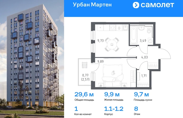 Предлагается 1-комнатная квартира комфорт-класса 29,62 кв.м в корпусе 1.1-1.2 на 8 этаже, в ЖК «Урбан Мартен» Квартира с предчистовой отделкой. Доступность дополнительных опций уточняйте у застройщика. Приобрести квартиру возможно по специальным акциям от застройщика, с текущими условиями акций можно ознакомиться в блоке “Акций”. Цена динамическая и может отличаться, уточняйте актуальность у застройщика. В жилом комплексе «Урбан Мартен» у вас будет собственная Уфа: домашняя, неторопливая, теплая. Здесь дети будут играть во дворе без машин в догонялки, собака сможет бегать за палкой по пляжу, а с соседями получится встречаться не только у лифта, но и на утренних занятиях йогой на зеленой лужайке рядом с домом. Жилой комплекс «Урбан Мартен» находится в Демском районе — самом тихом и зеленом в Уфе. Здесь можно открывать окна нараспашку, чтобы квартира наполнялась свежим воздухом, и наблюдать с балкона, как покачиваются макушки деревьев. #yan19-2r1737155#О застройщике