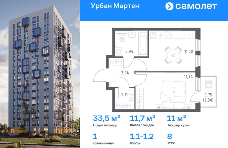 Предлагается 1-комнатная квартира комфорт-класса 33,48 кв.м в корпусе 1.1-1.2 на 8 этаже, в ЖК «Урбан Мартен» Квартира с предчистовой отделкой. Доступность дополнительных опций уточняйте у застройщика. Приобрести квартиру возможно по специальным акциям от застройщика, с текущими условиями акций можно ознакомиться в блоке «Акций». Цена динамическая и может отличаться, уточняйте актуальность у застройщика. В жилом комплексе «Урбан Мартен» у вас будет собственная Уфа: домашняя, неторопливая, теплая. Здесь дети будут играть во дворе без машин в догонялки, собака сможет бегать за палкой по пляжу, а с соседями получится встречаться не только у лифта, но и на утренних занятиях йогой на зеленой лужайке рядом с домом. Жилой комплекс «Урбан Мартен» находится в Демском районе — самом тихом и зеленом в Уфе. Здесь можно открывать окна нараспашку, чтобы квартира наполнялась свежим воздухом, и наблюдать с балкона, как покачиваются макушки деревьев. #yan19-2r1737159#О застройщике