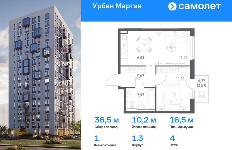 Строим кварталы для жизни с заботой о будущем. Предлагается 1-комнатная квартира комфорт-класса 36,39 кв.м в корпусе 1.3 на 4 этаже, в ЖК «Урбан Мартен» Квартира без отделки. Доступность опции «отделка» и возможность комплектации мебелью и декором уточняйте у застройщика. Приобрести квартиру возможно по специальным акциям от застройщика, с текущими условиями акций можно ознакомиться в блоке «Акций». Цена динамическая и может отличаться, уточняйте актуальность у застройщика. В жилом комплексе «Урбан Мартен» у вас будет собственная Уфа: домашняя, неторопливая, теплая. Здесь дети будут играть во дворе без машин в догонялки, собака сможет бегать за палкой по пляжу, а с соседями получится встречаться не только у лифта, но и на утренних занятиях йогой на зеленой лужайке рядом с домом. Жилой комплекс «Урбан Мартен» находится в Демском районе — самом тихом и зеленом в Уфе. Здесь можно открывать окна нараспашку, чтобы квартира наполнялась свежим воздухом, и наблюдать с балкона, как покачиваются макушки деревьев. #yan19-2r1737183#О застройщике