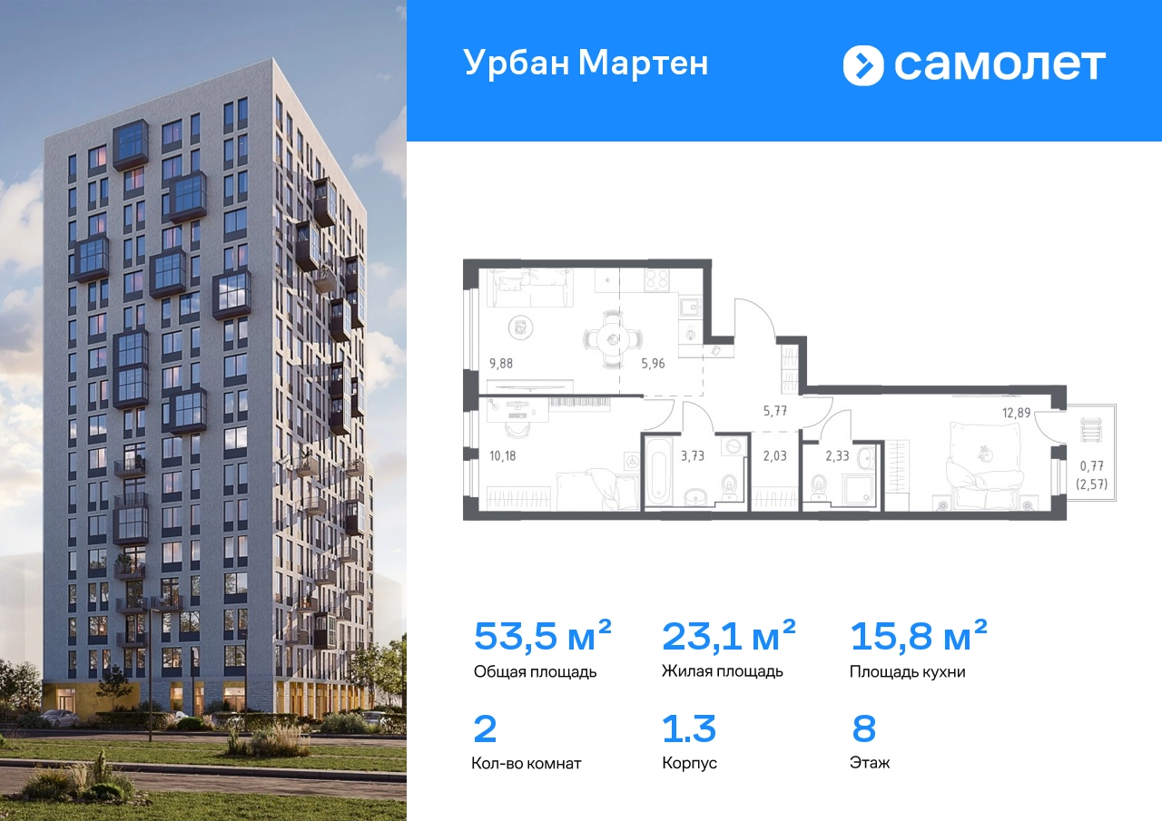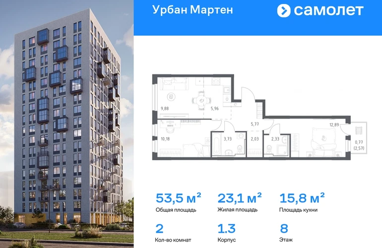 Строим кварталы для жизни с заботой о будущем. Предлагается 2-комнатная квартира комфорт-класса 53,87 кв.м в корпусе 1.3 на 8 этаже, в ЖК «Урбан Мартен» Квартира с предчистовой отделкой. Доступность дополнительных опций уточняйте у застройщика. Приобрести квартиру возможно по специальным акциям от застройщика, с текущими условиями акций можно ознакомиться в блоке «Акций». Цена динамическая и может отличаться, уточняйте актуальность у застройщика. В жилом комплексе «Урбан Мартен» у вас будет собственная Уфа: домашняя, неторопливая, теплая. Здесь дети будут играть во дворе без машин в догонялки, собака сможет бегать за палкой по пляжу, а с соседями получится встречаться не только у лифта, но и на утренних занятиях йогой на зеленой лужайке рядом с домом. Жилой комплекс «Урбан Мартен» находится в Демском районе — самом тихом и зеленом в Уфе. Здесь можно открывать окна нараспашку, чтобы квартира наполнялась свежим воздухом, и наблюдать с балкона, как покачиваются макушки деревьев. #yan19-2r1737192#О застройщике