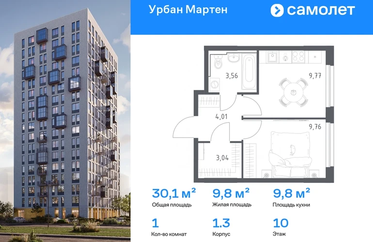 Предлагается 1-комнатная квартира комфорт-класса 30,14 кв.м в корпусе 1.3 на 10 этаже, в ЖК «Урбан Мартен» Квартира без отделки. Доступность опции "отделка" и возможность комплектации мебелью и декором уточняйте у застройщика. Приобрести квартиру возможно по специальным акциям от застройщика, с текущими условиями акций можно ознакомиться в блоке “Акций”. Цена динамическая и может отличаться, уточняйте актуальность у застройщика. В жилом комплексе «Урбан Мартен» у вас будет собственная Уфа: домашняя, неторопливая, теплая. Здесь дети будут играть во дворе без машин в догонялки, собака сможет бегать за палкой по пляжу, а с соседями получится встречаться не только у лифта, но и на утренних занятиях йогой на зеленой лужайке рядом с домом. Жилой комплекс «Урбан Мартен» находится в Демском районе — самом тихом и зеленом в Уфе. Здесь можно открывать окна нараспашку, чтобы квартира наполнялась свежим воздухом, и наблюдать с балкона, как покачиваются макушки деревьев. #yan19-2r1737206#О застройщике