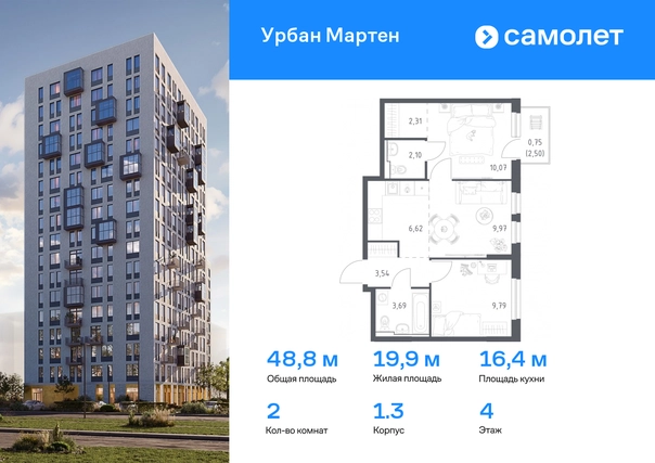 Предлагается 2-комнатная квартира комфорт-класса 48,84 кв.м в корпусе 1.3 на 4 этаже, в ЖК «Урбан Мартен» Квартира с предчистовой отделкой. Доступность дополнительных опций уточняйте у застройщика. Приобрести квартиру возможно по специальным акциям от застройщика, с текущими условиями акций можно ознакомиться в блоке “Акций”. Цена динамическая и может отличаться, уточняйте актуальность у застройщика. В жилом комплексе «Урбан Мартен» у вас будет собственная Уфа: домашняя, неторопливая, теплая. Здесь дети будут играть во дворе без машин в догонялки, собака сможет бегать за палкой по пляжу, а с соседями получится встречаться не только у лифта, но и на утренних занятиях йогой на зеленой лужайке рядом с домом. Жилой комплекс «Урбан Мартен» находится в Демском районе — самом тихом и зеленом в Уфе. Здесь можно открывать окна нараспашку, чтобы квартира наполнялась свежим воздухом, и наблюдать с балкона, как покачиваются макушки деревьев. #yan19-2r1737229#О застройщике