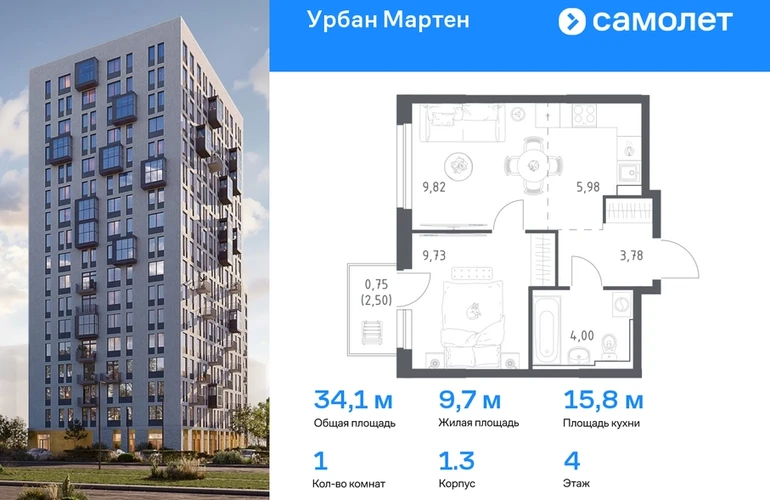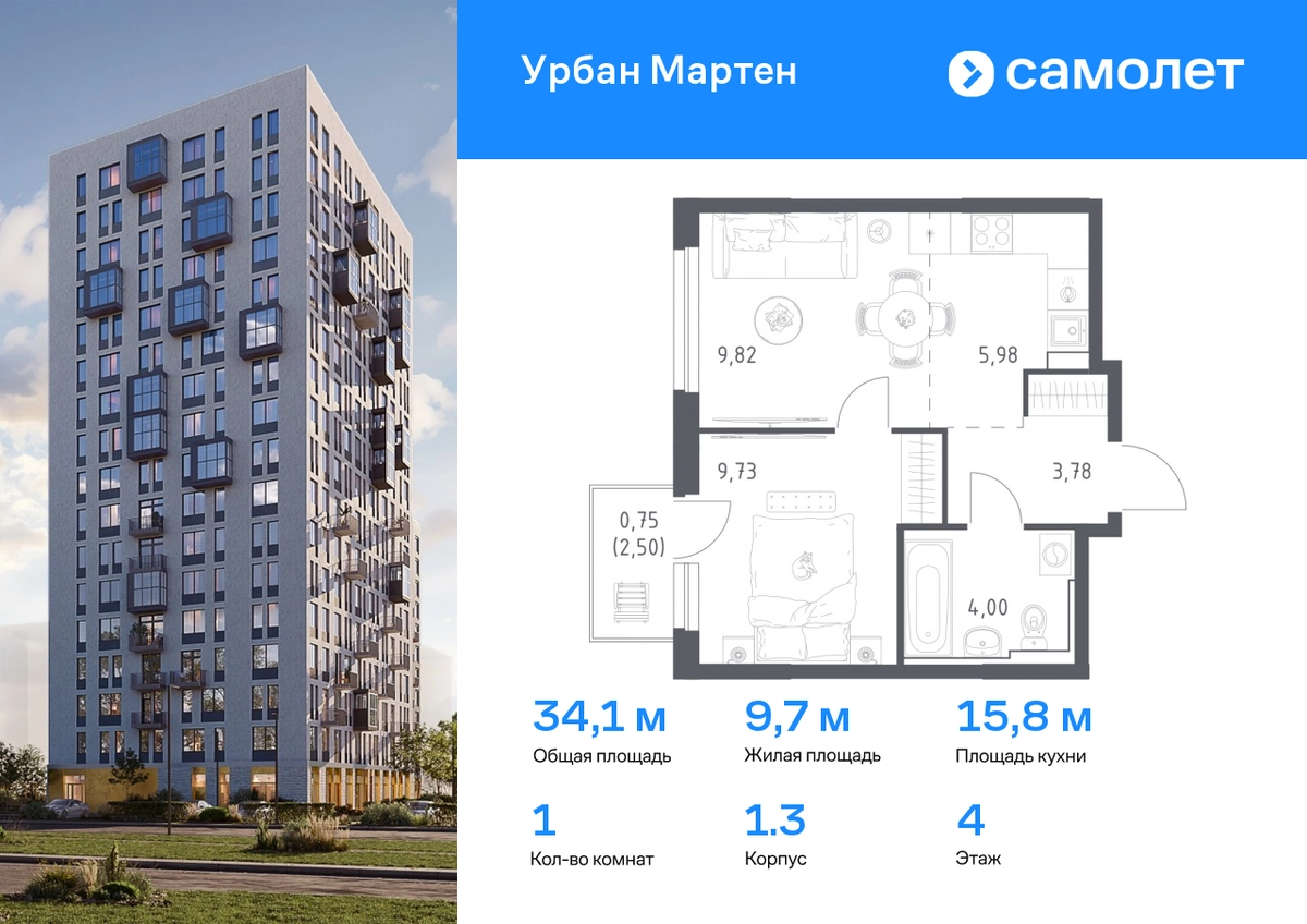 Предлагается 1-комнатная квартира комфорт-класса 34,06 кв.м в корпусе 1.3 на 4 этаже, в ЖК «Урбан Мартен» Квартира с предчистовой отделкой. Доступность дополнительных опций уточняйте у застройщика. Приобрести квартиру возможно по специальным акциям от застройщика, с текущими условиями акций можно ознакомиться в блоке “Акций”. Цена динамическая и может отличаться, уточняйте актуальность у застройщика. В жилом комплексе «Урбан Мартен» у вас будет собственная Уфа: домашняя, неторопливая, теплая. Здесь дети будут играть во дворе без машин в догонялки, собака сможет бегать за палкой по пляжу, а с соседями получится встречаться не только у лифта, но и на утренних занятиях йогой на зеленой лужайке рядом с домом. Жилой комплекс «Урбан Мартен» находится в Демском районе — самом тихом и зеленом в Уфе. Здесь можно открывать окна нараспашку, чтобы квартира наполнялась свежим воздухом, и наблюдать с балкона, как покачиваются макушки деревьев. #yan19-2r1737230#О застройщике