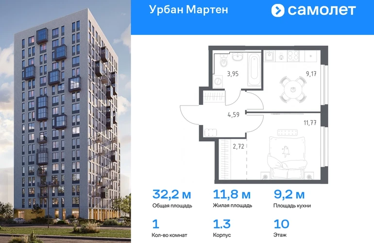 Предлагается 1-комнатная квартира комфорт-класса 32,2 кв.м в корпусе 1.3 на 10 этаже, в ЖК «Урбан Мартен» Квартира с предчистовой отделкой. Доступность дополнительных опций уточняйте у застройщика. Приобрести квартиру возможно по специальным акциям от застройщика, с текущими условиями акций можно ознакомиться в блоке “Акций”. Цена динамическая и может отличаться, уточняйте актуальность у застройщика. В жилом комплексе «Урбан Мартен» у вас будет собственная Уфа: домашняя, неторопливая, теплая. Здесь дети будут играть во дворе без машин в догонялки, собака сможет бегать за палкой по пляжу, а с соседями получится встречаться не только у лифта, но и на утренних занятиях йогой на зеленой лужайке рядом с домом. Жилой комплекс «Урбан Мартен» находится в Демском районе — самом тихом и зеленом в Уфе. Здесь можно открывать окна нараспашку, чтобы квартира наполнялась свежим воздухом, и наблюдать с балкона, как покачиваются макушки деревьев. #yan19-2r1737235#О застройщике