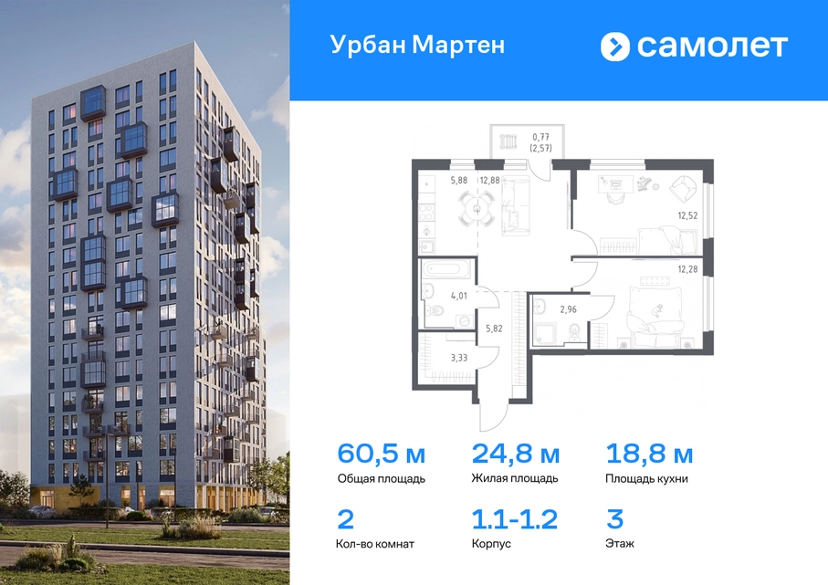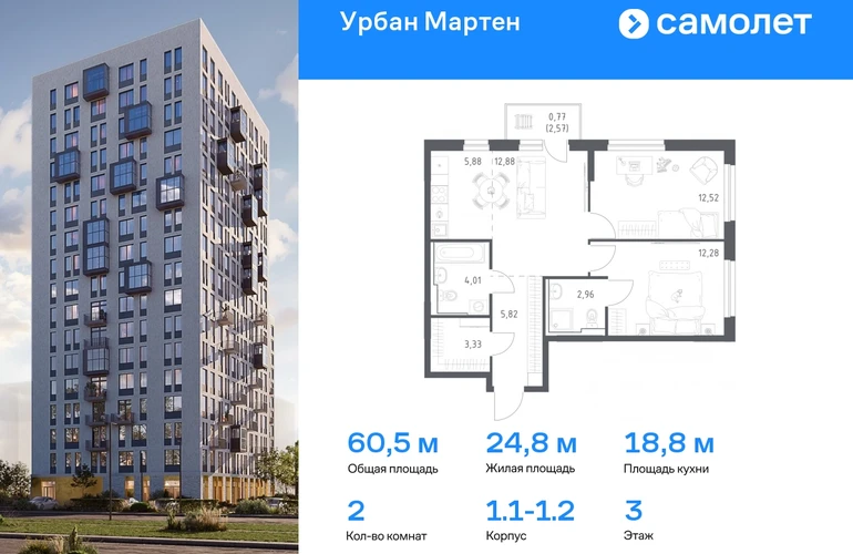 Строим кварталы для жизни с заботой о будущем. Предлагается 2-комнатная квартира комфорт-класса 60,76 кв.м в корпусе 1.1-1.2 на 3 этаже, в ЖК «Урбан Мартен» Квартира с чистовой отделкой. Доступность дополнительных опций уточняйте у застройщика. Приобрести квартиру возможно по специальным акциям от застройщика, с текущими условиями акций можно ознакомиться в блоке «Акций». Цена динамическая и может отличаться, уточняйте актуальность у застройщика. В жилом комплексе «Урбан Мартен» у вас будет собственная Уфа: домашняя, неторопливая, теплая. Здесь дети будут играть во дворе без машин в догонялки, собака сможет бегать за палкой по пляжу, а с соседями получится встречаться не только у лифта, но и на утренних занятиях йогой на зеленой лужайке рядом с домом. Жилой комплекс «Урбан Мартен» находится в Демском районе — самом тихом и зеленом в Уфе. Здесь можно открывать окна нараспашку, чтобы квартира наполнялась свежим воздухом, и наблюдать с балкона, как покачиваются макушки деревьев. #yan19-2r1746730#О застройщике
