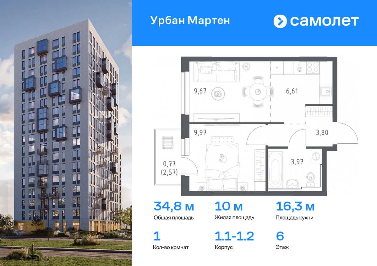 Предлагается 1-комнатная квартира комфорт-класса 34,79 кв.м в корпусе 1.1-1.2 на 6 этаже, в ЖК «Урбан Мартен» Квартира с чистовой отделкой. Доступность дополнительных опций уточняйте у застройщика. Приобрести квартиру возможно по специальным акциям от застройщика, с текущими условиями акций можно ознакомиться в блоке “Акций”. Цена динамическая и может отличаться, уточняйте актуальность у застройщика. В жилом комплексе «Урбан Мартен» у вас будет собственная Уфа: домашняя, неторопливая, теплая. Здесь дети будут играть во дворе без машин в догонялки, собака сможет бегать за палкой по пляжу, а с соседями получится встречаться не только у лифта, но и на утренних занятиях йогой на зеленой лужайке рядом с домом. Жилой комплекс «Урбан Мартен» находится в Демском районе — самом тихом и зеленом в Уфе. Здесь можно открывать окна нараспашку, чтобы квартира наполнялась свежим воздухом, и наблюдать с балкона, как покачиваются макушки деревьев. #yan19-2r1746735#О застройщике