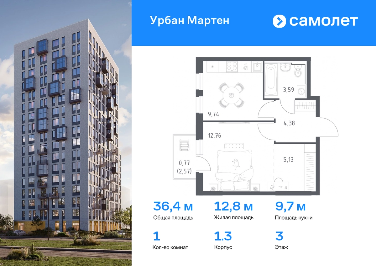Предлагается 1-комнатная квартира комфорт-класса 36,37 кв.м в корпусе 1.3 на 3 этаже, в ЖК «Урбан Мартен» Квартира без отделки. Доступность опции "отделка" и возможность комплектации мебелью и декором уточняйте у застройщика. Приобрести квартиру возможно по специальным акциям от застройщика, с текущими условиями акций можно ознакомиться в блоке “Акций”. Цена динамическая и может отличаться, уточняйте актуальность у застройщика. В жилом комплексе «Урбан Мартен» у вас будет собственная Уфа: домашняя, неторопливая, теплая. Здесь дети будут играть во дворе без машин в догонялки, собака сможет бегать за палкой по пляжу, а с соседями получится встречаться не только у лифта, но и на утренних занятиях йогой на зеленой лужайке рядом с домом. Жилой комплекс «Урбан Мартен» находится в Демском районе — самом тихом и зеленом в Уфе. Здесь можно открывать окна нараспашку, чтобы квартира наполнялась свежим воздухом, и наблюдать с балкона, как покачиваются макушки деревьев. #yan19-2r1747849#О застройщике