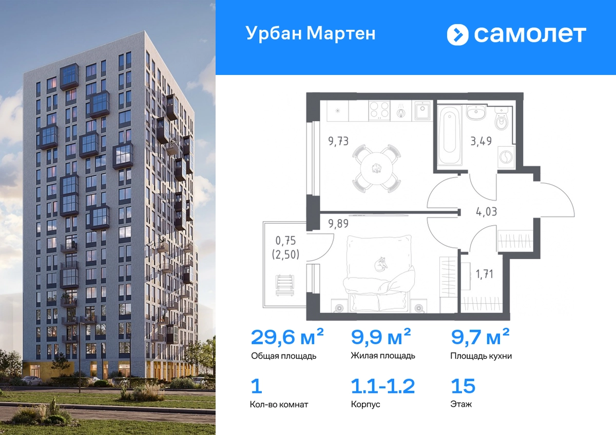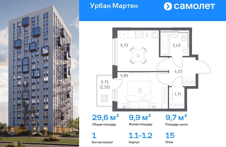 Предлагается 1-комнатная квартира комфорт-класса 29,6 кв.м в корпусе 1.1-1.2 на 15 этаже, в ЖК «Урбан Мартен» Квартира с предчистовой отделкой. Доступность дополнительных опций уточняйте у застройщика. Приобрести квартиру возможно по специальным акциям от застройщика, с текущими условиями акций можно ознакомиться в блоке «Акций». Цена динамическая и может отличаться, уточняйте актуальность у застройщика. В жилом комплексе «Урбан Мартен» у вас будет собственная Уфа: домашняя, неторопливая, теплая. Здесь дети будут играть во дворе без машин в догонялки, собака сможет бегать за палкой по пляжу, а с соседями получится встречаться не только у лифта, но и на утренних занятиях йогой на зеленой лужайке рядом с домом. Жилой комплекс «Урбан Мартен» находится в Демском районе — самом тихом и зеленом в Уфе. Здесь можно открывать окна нараспашку, чтобы квартира наполнялась свежим воздухом, и наблюдать с балкона, как покачиваются макушки деревьев. #yan19-2r1753896#О застройщике