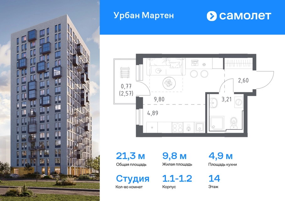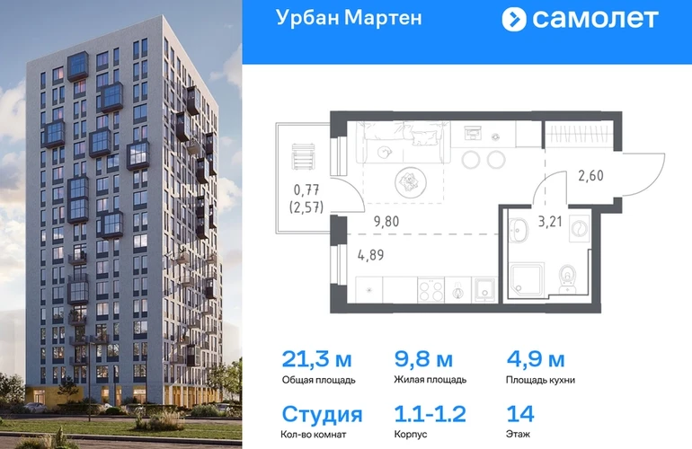 Предлагается квартира студия комфорт-класса 21,27 кв.м в корпусе 1.1-1.2 на 14 этаже, в ЖК «Урбан Мартен» Квартира с предчистовой отделкой. Доступность дополнительных опций уточняйте у застройщика. Приобрести квартиру возможно по специальным акциям от застройщика, с текущими условиями акций можно ознакомиться в блоке “Акций”. Цена динамическая и может отличаться, уточняйте актуальность у застройщика. В жилом комплексе «Урбан Мартен» у вас будет собственная Уфа: домашняя, неторопливая, теплая. Здесь дети будут играть во дворе без машин в догонялки, собака сможет бегать за палкой по пляжу, а с соседями получится встречаться не только у лифта, но и на утренних занятиях йогой на зеленой лужайке рядом с домом. Жилой комплекс «Урбан Мартен» находится в Демском районе — самом тихом и зеленом в Уфе. Здесь можно открывать окна нараспашку, чтобы квартира наполнялась свежим воздухом, и наблюдать с балкона, как покачиваются макушки деревьев. #yan19-2r1754921#О застройщике