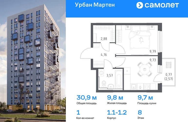 Предлагается 1-комнатная квартира комфорт-класса 30,9 кв.м в корпусе 1.1-1.2 на 8 этаже, в ЖК «Урбан Мартен» Квартира с чистовой отделкой. Доступность дополнительных опций уточняйте у застройщика. Приобрести квартиру возможно по специальным акциям от застройщика, с текущими условиями акций можно ознакомиться в блоке “Акций”. Цена динамическая и может отличаться, уточняйте актуальность у застройщика. В жилом комплексе «Урбан Мартен» у вас будет собственная Уфа: домашняя, неторопливая, теплая. Здесь дети будут играть во дворе без машин в догонялки, собака сможет бегать за палкой по пляжу, а с соседями получится встречаться не только у лифта, но и на утренних занятиях йогой на зеленой лужайке рядом с домом. Жилой комплекс «Урбан Мартен» находится в Демском районе — самом тихом и зеленом в Уфе. Здесь можно открывать окна нараспашку, чтобы квартира наполнялась свежим воздухом, и наблюдать с балкона, как покачиваются макушки деревьев. #yan19-2r1758310#О застройщике