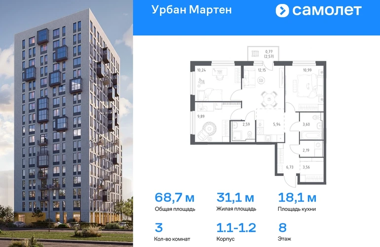 Строим кварталы для жизни с заботой о будущем. Предлагается 3-комнатная квартира комфорт-класса 69,79 кв.м в корпусе 1.1-1.2 на 8 этаже, в ЖК «Урбан Мартен» Квартира с чистовой отделкой. Доступность дополнительных опций уточняйте у застройщика. Приобрести квартиру возможно по специальным акциям от застройщика, с текущими условиями акций можно ознакомиться в блоке «Акций». Цена динамическая и может отличаться, уточняйте актуальность у застройщика. В жилом комплексе «Урбан Мартен» у вас будет собственная Уфа: домашняя, неторопливая, теплая. Здесь дети будут играть во дворе без машин в догонялки, собака сможет бегать за палкой по пляжу, а с соседями получится встречаться не только у лифта, но и на утренних занятиях йогой на зеленой лужайке рядом с домом. Жилой комплекс «Урбан Мартен» находится в Демском районе — самом тихом и зеленом в Уфе. Здесь можно открывать окна нараспашку, чтобы квартира наполнялась свежим воздухом, и наблюдать с балкона, как покачиваются макушки деревьев. #yan19-2r1758312#О застройщике