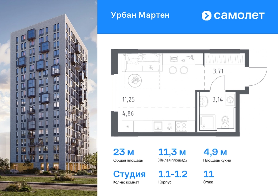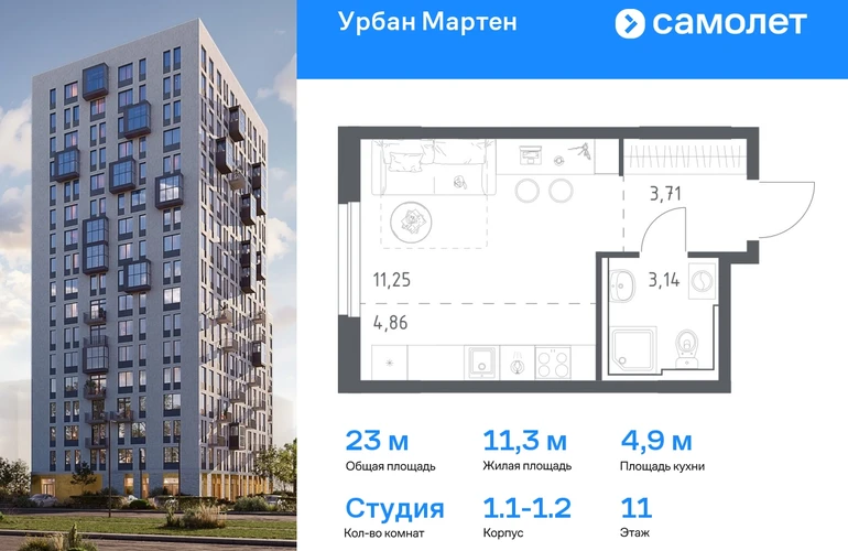 Строим кварталы для жизни с заботой о будущем. Предлагается квартира студия комфорт-класса 23,07 кв.м в корпусе 1.1-1.2 на 11 этаже, в ЖК «Урбан Мартен» Квартира с чистовой отделкой. Доступность дополнительных опций уточняйте у застройщика. Приобрести квартиру возможно по специальным акциям от застройщика, с текущими условиями акций можно ознакомиться в блоке «Акций». Цена динамическая и может отличаться, уточняйте актуальность у застройщика. В жилом комплексе «Урбан Мартен» у вас будет собственная Уфа: домашняя, неторопливая, теплая. Здесь дети будут играть во дворе без машин в догонялки, собака сможет бегать за палкой по пляжу, а с соседями получится встречаться не только у лифта, но и на утренних занятиях йогой на зеленой лужайке рядом с домом. Жилой комплекс «Урбан Мартен» находится в Демском районе — самом тихом и зеленом в Уфе. Здесь можно открывать окна нараспашку, чтобы квартира наполнялась свежим воздухом, и наблюдать с балкона, как покачиваются макушки деревьев. #yan19-2r1758314#О застройщике