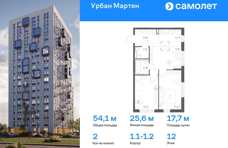 Предлагается 2-комнатная квартира комфорт-класса 54,09 кв.м в корпусе 1.1-1.2 на 12 этаже, в ЖК «Урбан Мартен» Квартира с чистовой отделкой. Доступность дополнительных опций уточняйте у застройщика. Приобрести квартиру возможно по специальным акциям от застройщика, с текущими условиями акций можно ознакомиться в блоке “Акций”. Цена динамическая и может отличаться, уточняйте актуальность у застройщика. В жилом комплексе «Урбан Мартен» у вас будет собственная Уфа: домашняя, неторопливая, теплая. Здесь дети будут играть во дворе без машин в догонялки, собака сможет бегать за палкой по пляжу, а с соседями получится встречаться не только у лифта, но и на утренних занятиях йогой на зеленой лужайке рядом с домом. Жилой комплекс «Урбан Мартен» находится в Демском районе — самом тихом и зеленом в Уфе. Здесь можно открывать окна нараспашку, чтобы квартира наполнялась свежим воздухом, и наблюдать с балкона, как покачиваются макушки деревьев. #yan19-2r1758322#О застройщике