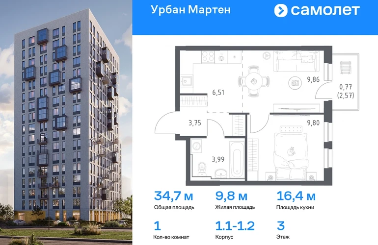 Предлагается 1-комнатная квартира комфорт-класса 34,68 кв.м в корпусе 1.1-1.2 на 3 этаже, в ЖК «Урбан Мартен» Квартира с предчистовой отделкой. Доступность дополнительных опций уточняйте у застройщика. Приобрести квартиру возможно по специальным акциям от застройщика, с текущими условиями акций можно ознакомиться в блоке “Акций”. Цена динамическая и может отличаться, уточняйте актуальность у застройщика. В жилом комплексе «Урбан Мартен» у вас будет собственная Уфа: домашняя, неторопливая, теплая. Здесь дети будут играть во дворе без машин в догонялки, собака сможет бегать за палкой по пляжу, а с соседями получится встречаться не только у лифта, но и на утренних занятиях йогой на зеленой лужайке рядом с домом. Жилой комплекс «Урбан Мартен» находится в Демском районе — самом тихом и зеленом в Уфе. Здесь можно открывать окна нараспашку, чтобы квартира наполнялась свежим воздухом, и наблюдать с балкона, как покачиваются макушки деревьев. #yan19-2r1758325#О застройщике