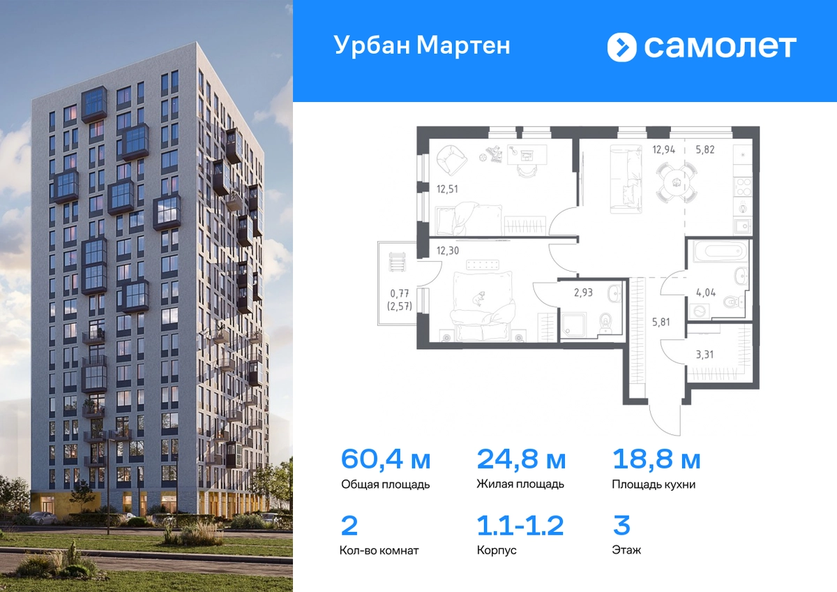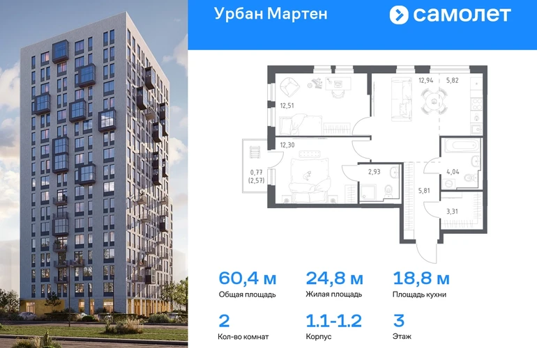 Строим кварталы для жизни с заботой о будущем. Предлагается 2-комнатная квартира комфорт-класса 60,76 кв.м в корпусе 1.1-1.2 на 3 этаже, в ЖК «Урбан Мартен» Квартира с предчистовой отделкой. Доступность дополнительных опций уточняйте у застройщика. Приобрести квартиру возможно по специальным акциям от застройщика, с текущими условиями акций можно ознакомиться в блоке «Акций». Цена динамическая и может отличаться, уточняйте актуальность у застройщика. В жилом комплексе «Урбан Мартен» у вас будет собственная Уфа: домашняя, неторопливая, теплая. Здесь дети будут играть во дворе без машин в догонялки, собака сможет бегать за палкой по пляжу, а с соседями получится встречаться не только у лифта, но и на утренних занятиях йогой на зеленой лужайке рядом с домом. Жилой комплекс «Урбан Мартен» находится в Демском районе — самом тихом и зеленом в Уфе. Здесь можно открывать окна нараспашку, чтобы квартира наполнялась свежим воздухом, и наблюдать с балкона, как покачиваются макушки деревьев. #yan19-2r1758330#О застройщике