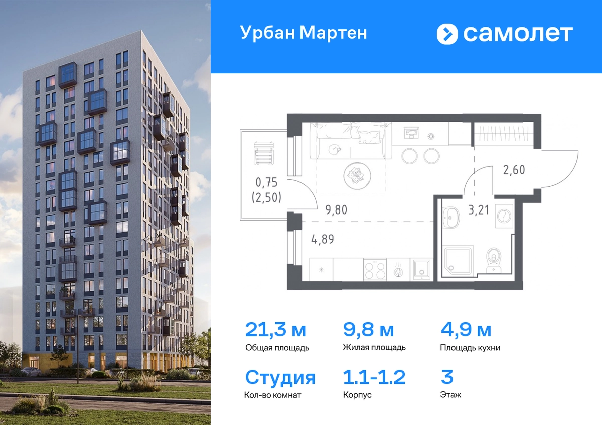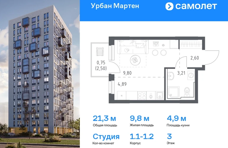 Предлагается квартира студия комфорт-класса 21,25 кв.м в корпусе 1.1-1.2 на 3 этаже, в ЖК «Урбан Мартен» Квартира с предчистовой отделкой. Доступность дополнительных опций уточняйте у застройщика. Приобрести квартиру возможно по специальным акциям от застройщика, с текущими условиями акций можно ознакомиться в блоке «Акций». Цена динамическая и может отличаться, уточняйте актуальность у застройщика. В жилом комплексе «Урбан Мартен» у вас будет собственная Уфа: домашняя, неторопливая, теплая. Здесь дети будут играть во дворе без машин в догонялки, собака сможет бегать за палкой по пляжу, а с соседями получится встречаться не только у лифта, но и на утренних занятиях йогой на зеленой лужайке рядом с домом. Жилой комплекс «Урбан Мартен» находится в Демском районе — самом тихом и зеленом в Уфе. Здесь можно открывать окна нараспашку, чтобы квартира наполнялась свежим воздухом, и наблюдать с балкона, как покачиваются макушки деревьев. #yan19-2r1758334#О застройщике