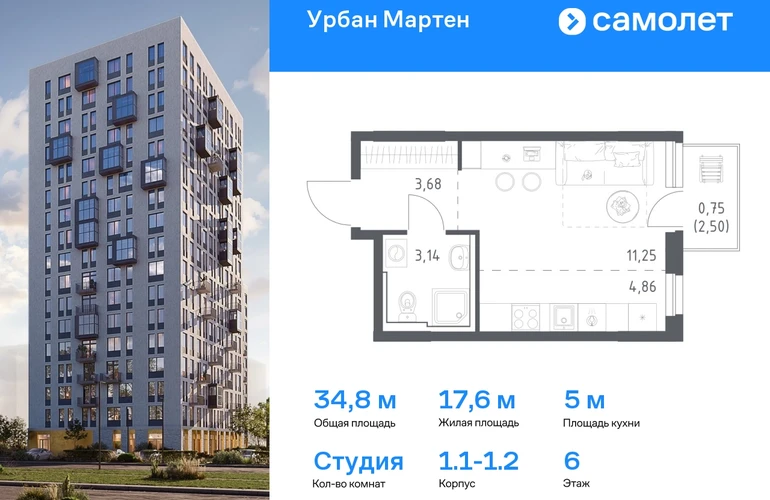 Строим кварталы для жизни с заботой о будущем. Предлагается квартира студия комфорт-класса 35 кв.м в корпусе 1.1-1.2 на 6 этаже, в ЖК «Урбан Мартен» Квартира с предчистовой отделкой. Доступность дополнительных опций уточняйте у застройщика. Приобрести квартиру возможно по специальным акциям от застройщика, с текущими условиями акций можно ознакомиться в блоке «Акций». Цена динамическая и может отличаться, уточняйте актуальность у застройщика. В жилом комплексе «Урбан Мартен» у вас будет собственная Уфа: домашняя, неторопливая, теплая. Здесь дети будут играть во дворе без машин в догонялки, собака сможет бегать за палкой по пляжу, а с соседями получится встречаться не только у лифта, но и на утренних занятиях йогой на зеленой лужайке рядом с домом. Жилой комплекс «Урбан Мартен» находится в Демском районе — самом тихом и зеленом в Уфе. Здесь можно открывать окна нараспашку, чтобы квартира наполнялась свежим воздухом, и наблюдать с балкона, как покачиваются макушки деревьев. #yan19-2r1758347#О застройщике