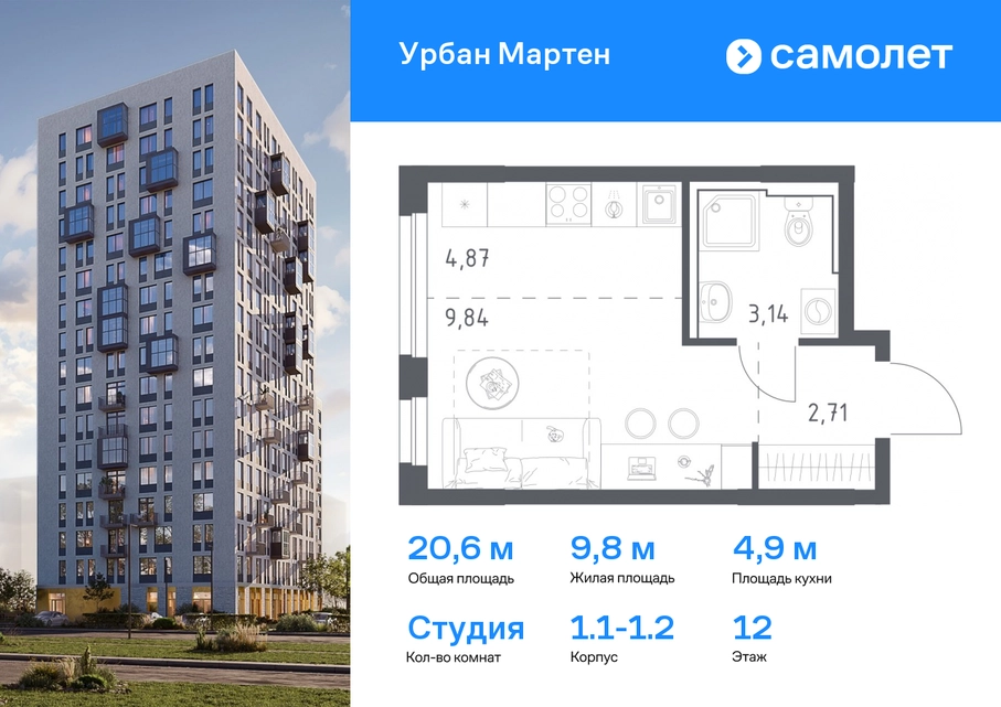 Предлагается квартира студия комфорт-класса 20,56 кв.м в корпусе 1.1-1.2 на 12 этаже, в ЖК «Урбан Мартен» Квартира с предчистовой отделкой. Доступность дополнительных опций уточняйте у застройщика. Приобрести квартиру возможно по специальным акциям от застройщика, с текущими условиями акций можно ознакомиться в блоке “Акций”. Цена динамическая и может отличаться, уточняйте актуальность у застройщика. В жилом комплексе «Урбан Мартен» у вас будет собственная Уфа: домашняя, неторопливая, теплая. Здесь дети будут играть во дворе без машин в догонялки, собака сможет бегать за палкой по пляжу, а с соседями получится встречаться не только у лифта, но и на утренних занятиях йогой на зеленой лужайке рядом с домом. Жилой комплекс «Урбан Мартен» находится в Демском районе — самом тихом и зеленом в Уфе. Здесь можно открывать окна нараспашку, чтобы квартира наполнялась свежим воздухом, и наблюдать с балкона, как покачиваются макушки деревьев. #yan19-2r1758350#О застройщике