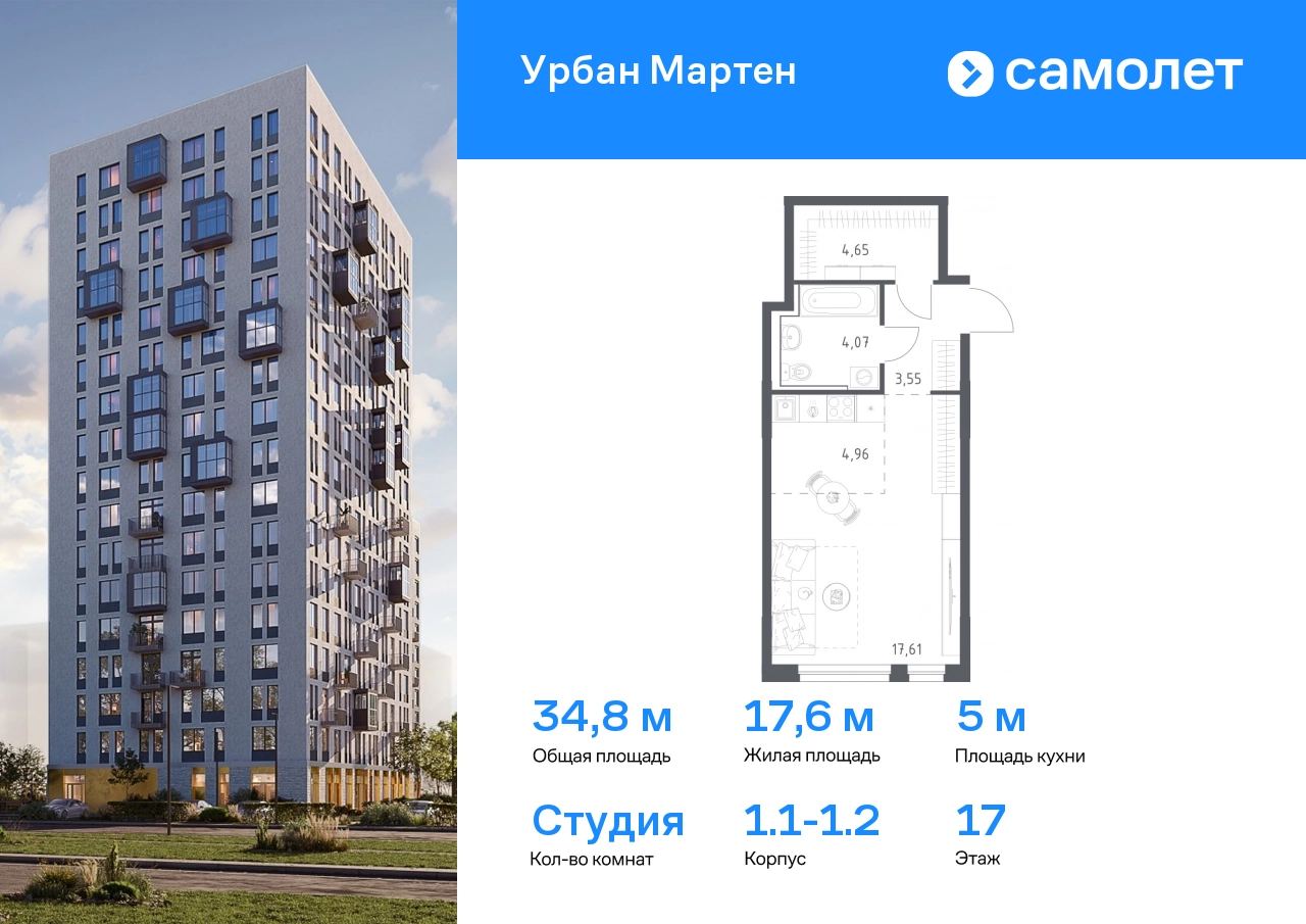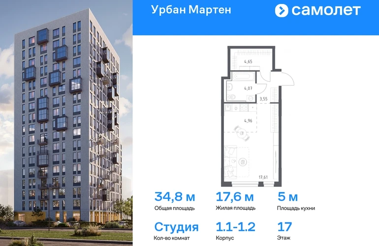 Строим кварталы для жизни с заботой о будущем. Предлагается квартира студия комфорт-класса 35 кв.м в корпусе 1.1-1.2 на 17 этаже, в ЖК «Урбан Мартен» Квартира с предчистовой отделкой. Доступность дополнительных опций уточняйте у застройщика. Приобрести квартиру возможно по специальным акциям от застройщика, с текущими условиями акций можно ознакомиться в блоке «Акций». Цена динамическая и может отличаться, уточняйте актуальность у застройщика. В жилом комплексе «Урбан Мартен» у вас будет собственная Уфа: домашняя, неторопливая, теплая. Здесь дети будут играть во дворе без машин в догонялки, собака сможет бегать за палкой по пляжу, а с соседями получится встречаться не только у лифта, но и на утренних занятиях йогой на зеленой лужайке рядом с домом. Жилой комплекс «Урбан Мартен» находится в Демском районе — самом тихом и зеленом в Уфе. Здесь можно открывать окна нараспашку, чтобы квартира наполнялась свежим воздухом, и наблюдать с балкона, как покачиваются макушки деревьев. #yan19-2r1758366#О застройщике