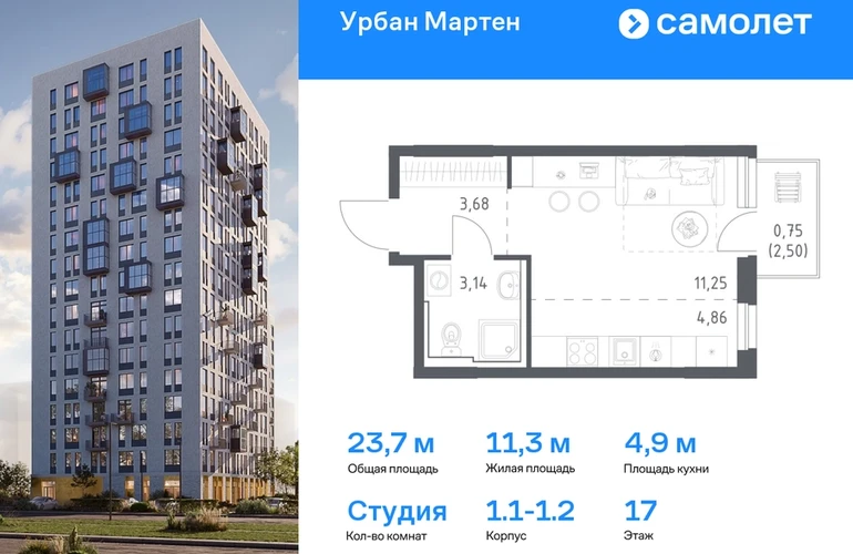 Строим кварталы для жизни с заботой о будущем. Предлагается квартира студия комфорт-класса 23,81 кв.м в корпусе 1.1-1.2 на 17 этаже, в ЖК «Урбан Мартен» Квартира с предчистовой отделкой. Доступность дополнительных опций уточняйте у застройщика. Приобрести квартиру возможно по специальным акциям от застройщика, с текущими условиями акций можно ознакомиться в блоке «Акций». Цена динамическая и может отличаться, уточняйте актуальность у застройщика. В жилом комплексе «Урбан Мартен» у вас будет собственная Уфа: домашняя, неторопливая, теплая. Здесь дети будут играть во дворе без машин в догонялки, собака сможет бегать за палкой по пляжу, а с соседями получится встречаться не только у лифта, но и на утренних занятиях йогой на зеленой лужайке рядом с домом. Жилой комплекс «Урбан Мартен» находится в Демском районе — самом тихом и зеленом в Уфе. Здесь можно открывать окна нараспашку, чтобы квартира наполнялась свежим воздухом, и наблюдать с балкона, как покачиваются макушки деревьев. #yan19-2r1758370#О застройщике