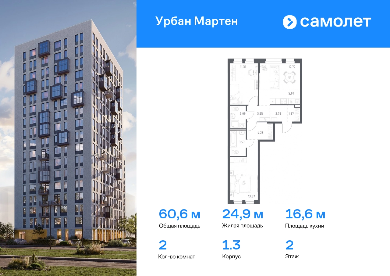 Строим кварталы для жизни с заботой о будущем. Предлагается 2-комнатная квартира комфорт-класса 60,93 кв.м в корпусе 1.3 на 2 этаже, в ЖК «Урбан Мартен» Квартира с предчистовой отделкой. Доступность дополнительных опций уточняйте у застройщика. Приобрести квартиру возможно по специальным акциям от застройщика, с текущими условиями акций можно ознакомиться в блоке «Акций». Цена динамическая и может отличаться, уточняйте актуальность у застройщика. В жилом комплексе «Урбан Мартен» у вас будет собственная Уфа: домашняя, неторопливая, теплая. Здесь дети будут играть во дворе без машин в догонялки, собака сможет бегать за палкой по пляжу, а с соседями получится встречаться не только у лифта, но и на утренних занятиях йогой на зеленой лужайке рядом с домом. Жилой комплекс «Урбан Мартен» находится в Демском районе — самом тихом и зеленом в Уфе. Здесь можно открывать окна нараспашку, чтобы квартира наполнялась свежим воздухом, и наблюдать с балкона, как покачиваются макушки деревьев. #yan19-2r1758377#О застройщике