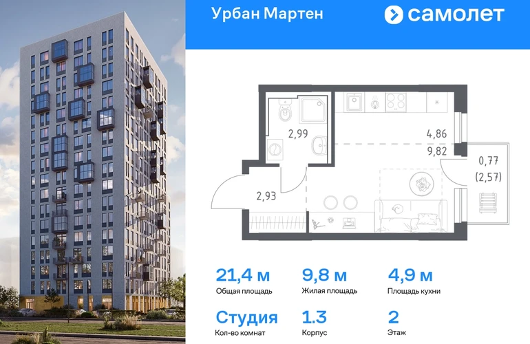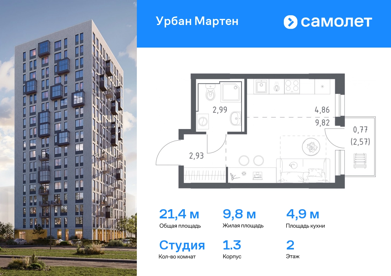 Строим кварталы для жизни с заботой о будущем. Предлагается квартира студия комфорт-класса 21,48 кв.м в корпусе 1.3 на 2 этаже, в ЖК «Урбан Мартен» Квартира с предчистовой отделкой. Доступность дополнительных опций уточняйте у застройщика. Приобрести квартиру возможно по специальным акциям от застройщика, с текущими условиями акций можно ознакомиться в блоке «Акций». Цена динамическая и может отличаться, уточняйте актуальность у застройщика. В жилом комплексе «Урбан Мартен» у вас будет собственная Уфа: домашняя, неторопливая, теплая. Здесь дети будут играть во дворе без машин в догонялки, собака сможет бегать за палкой по пляжу, а с соседями получится встречаться не только у лифта, но и на утренних занятиях йогой на зеленой лужайке рядом с домом. Жилой комплекс «Урбан Мартен» находится в Демском районе — самом тихом и зеленом в Уфе. Здесь можно открывать окна нараспашку, чтобы квартира наполнялась свежим воздухом, и наблюдать с балкона, как покачиваются макушки деревьев. #yan19-2r1758380#О застройщике