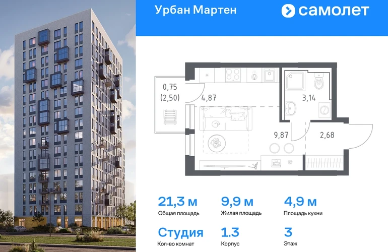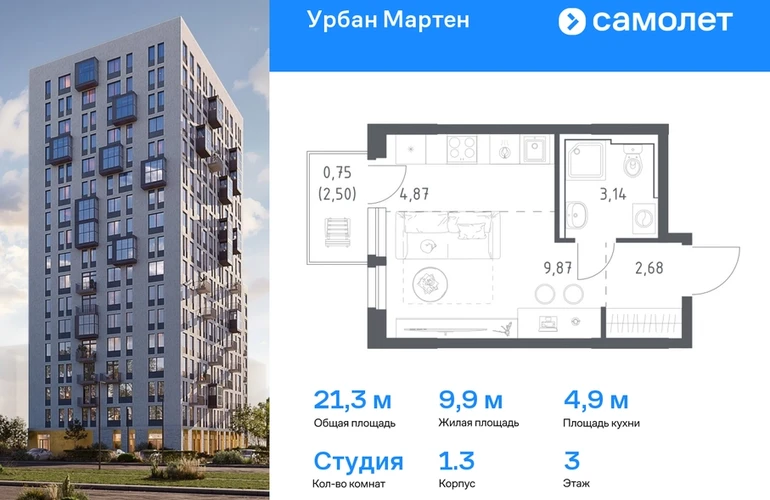 Строим кварталы для жизни с заботой о будущем. Предлагается квартира студия комфорт-класса 21,43 кв.м в корпусе 1.3 на 3 этаже, в ЖК «Урбан Мартен» Квартира с предчистовой отделкой. Доступность дополнительных опций уточняйте у застройщика. Приобрести квартиру возможно по специальным акциям от застройщика, с текущими условиями акций можно ознакомиться в блоке «Акций». Цена динамическая и может отличаться, уточняйте актуальность у застройщика. В жилом комплексе «Урбан Мартен» у вас будет собственная Уфа: домашняя, неторопливая, теплая. Здесь дети будут играть во дворе без машин в догонялки, собака сможет бегать за палкой по пляжу, а с соседями получится встречаться не только у лифта, но и на утренних занятиях йогой на зеленой лужайке рядом с домом. Жилой комплекс «Урбан Мартен» находится в Демском районе — самом тихом и зеленом в Уфе. Здесь можно открывать окна нараспашку, чтобы квартира наполнялась свежим воздухом, и наблюдать с балкона, как покачиваются макушки деревьев. #yan19-2r1758406#О застройщике