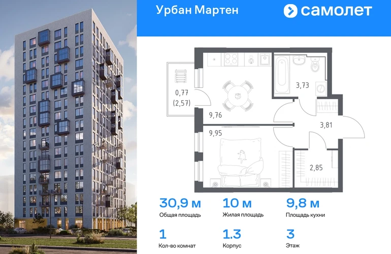 Предлагается 1-комнатная квартира комфорт-класса 30,87 кв.м в корпусе 1.3 на 3 этаже, в ЖК «Урбан Мартен» Квартира с предчистовой отделкой. Доступность дополнительных опций уточняйте у застройщика. Приобрести квартиру возможно по специальным акциям от застройщика, с текущими условиями акций можно ознакомиться в блоке “Акций”. Цена динамическая и может отличаться, уточняйте актуальность у застройщика. В жилом комплексе «Урбан Мартен» у вас будет собственная Уфа: домашняя, неторопливая, теплая. Здесь дети будут играть во дворе без машин в догонялки, собака сможет бегать за палкой по пляжу, а с соседями получится встречаться не только у лифта, но и на утренних занятиях йогой на зеленой лужайке рядом с домом. Жилой комплекс «Урбан Мартен» находится в Демском районе — самом тихом и зеленом в Уфе. Здесь можно открывать окна нараспашку, чтобы квартира наполнялась свежим воздухом, и наблюдать с балкона, как покачиваются макушки деревьев. #yan19-2r1758413#О застройщике