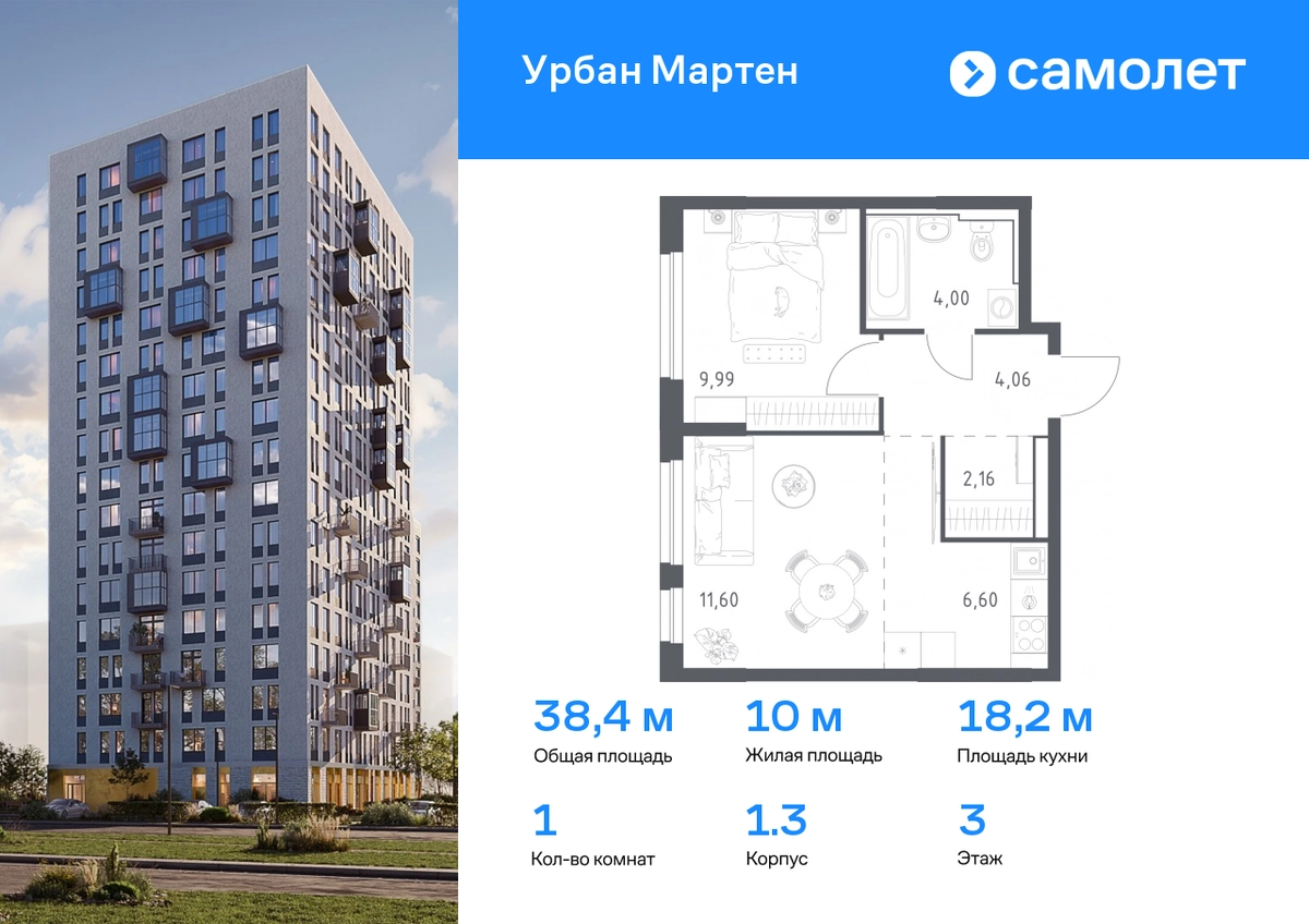 Предлагается 1-комнатная квартира комфорт-класса 38,41 кв.м в корпусе 1.3 на 3 этаже, в ЖК «Урбан Мартен» Квартира с предчистовой отделкой. Доступность дополнительных опций уточняйте у застройщика. Приобрести квартиру возможно по специальным акциям от застройщика, с текущими условиями акций можно ознакомиться в блоке “Акций”. Цена динамическая и может отличаться, уточняйте актуальность у застройщика. В жилом комплексе «Урбан Мартен» у вас будет собственная Уфа: домашняя, неторопливая, теплая. Здесь дети будут играть во дворе без машин в догонялки, собака сможет бегать за палкой по пляжу, а с соседями получится встречаться не только у лифта, но и на утренних занятиях йогой на зеленой лужайке рядом с домом. Жилой комплекс «Урбан Мартен» находится в Демском районе — самом тихом и зеленом в Уфе. Здесь можно открывать окна нараспашку, чтобы квартира наполнялась свежим воздухом, и наблюдать с балкона, как покачиваются макушки деревьев. #yan19-2r1758414#О застройщике