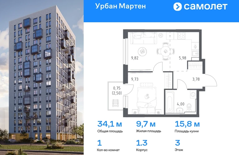 Предлагается 1-комнатная квартира комфорт-класса 34,06 кв.м в корпусе 1.3 на 3 этаже, в ЖК «Урбан Мартен» Квартира с предчистовой отделкой. Доступность дополнительных опций уточняйте у застройщика. Приобрести квартиру возможно по специальным акциям от застройщика, с текущими условиями акций можно ознакомиться в блоке “Акций”. Цена динамическая и может отличаться, уточняйте актуальность у застройщика. В жилом комплексе «Урбан Мартен» у вас будет собственная Уфа: домашняя, неторопливая, теплая. Здесь дети будут играть во дворе без машин в догонялки, собака сможет бегать за палкой по пляжу, а с соседями получится встречаться не только у лифта, но и на утренних занятиях йогой на зеленой лужайке рядом с домом. Жилой комплекс «Урбан Мартен» находится в Демском районе — самом тихом и зеленом в Уфе. Здесь можно открывать окна нараспашку, чтобы квартира наполнялась свежим воздухом, и наблюдать с балкона, как покачиваются макушки деревьев. #yan19-2r1758429#О застройщике