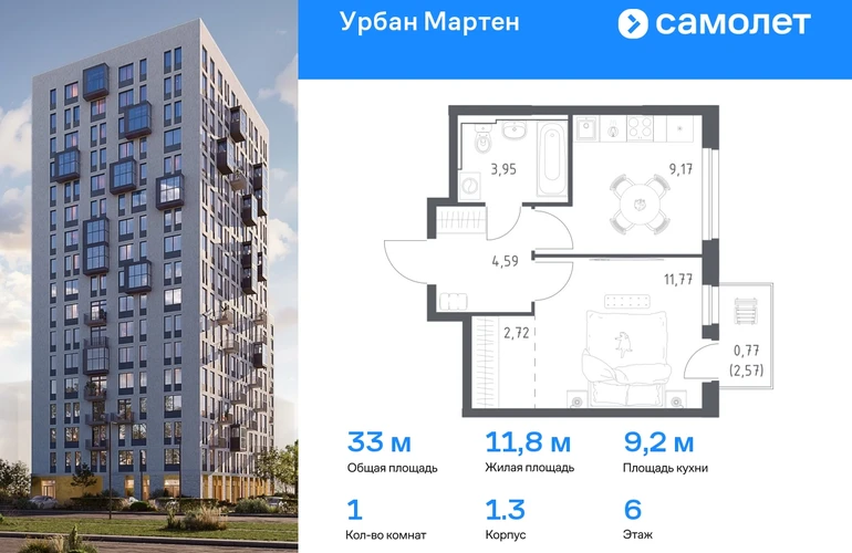 Предлагается 1-комнатная квартира комфорт-класса 32,97 кв.м в корпусе 1.3 на 6 этаже, в ЖК «Урбан Мартен» Квартира с предчистовой отделкой. Доступность дополнительных опций уточняйте у застройщика. Приобрести квартиру возможно по специальным акциям от застройщика, с текущими условиями акций можно ознакомиться в блоке “Акций”. Цена динамическая и может отличаться, уточняйте актуальность у застройщика. В жилом комплексе «Урбан Мартен» у вас будет собственная Уфа: домашняя, неторопливая, теплая. Здесь дети будут играть во дворе без машин в догонялки, собака сможет бегать за палкой по пляжу, а с соседями получится встречаться не только у лифта, но и на утренних занятиях йогой на зеленой лужайке рядом с домом. Жилой комплекс «Урбан Мартен» находится в Демском районе — самом тихом и зеленом в Уфе. Здесь можно открывать окна нараспашку, чтобы квартира наполнялась свежим воздухом, и наблюдать с балкона, как покачиваются макушки деревьев. #yan19-2r1758442#О застройщике