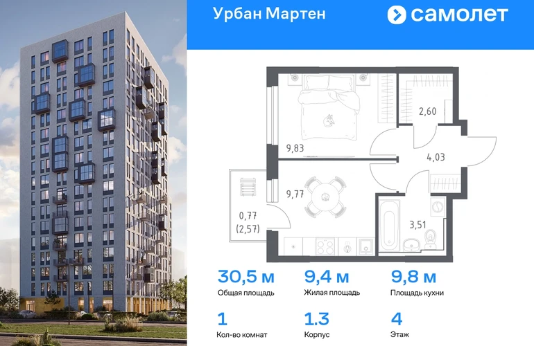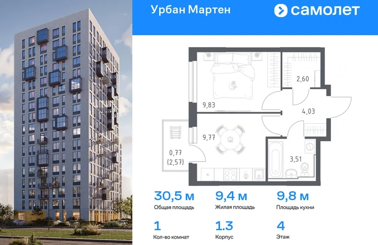 Предлагается 1-комнатная квартира комфорт-класса 30,51 кв.м в корпусе 1.3 на 4 этаже, в ЖК «Урбан Мартен» Квартира с предчистовой отделкой. Доступность дополнительных опций уточняйте у застройщика. Приобрести квартиру возможно по специальным акциям от застройщика, с текущими условиями акций можно ознакомиться в блоке «Акций». Цена динамическая и может отличаться, уточняйте актуальность у застройщика. В жилом комплексе «Урбан Мартен» у вас будет собственная Уфа: домашняя, неторопливая, теплая. Здесь дети будут играть во дворе без машин в догонялки, собака сможет бегать за палкой по пляжу, а с соседями получится встречаться не только у лифта, но и на утренних занятиях йогой на зеленой лужайке рядом с домом. Жилой комплекс «Урбан Мартен» находится в Демском районе — самом тихом и зеленом в Уфе. Здесь можно открывать окна нараспашку, чтобы квартира наполнялась свежим воздухом, и наблюдать с балкона, как покачиваются макушки деревьев. #yan19-2r1768343#О застройщике