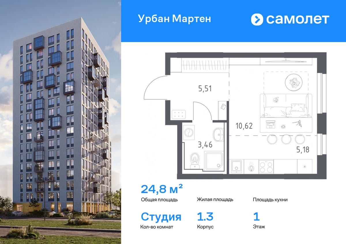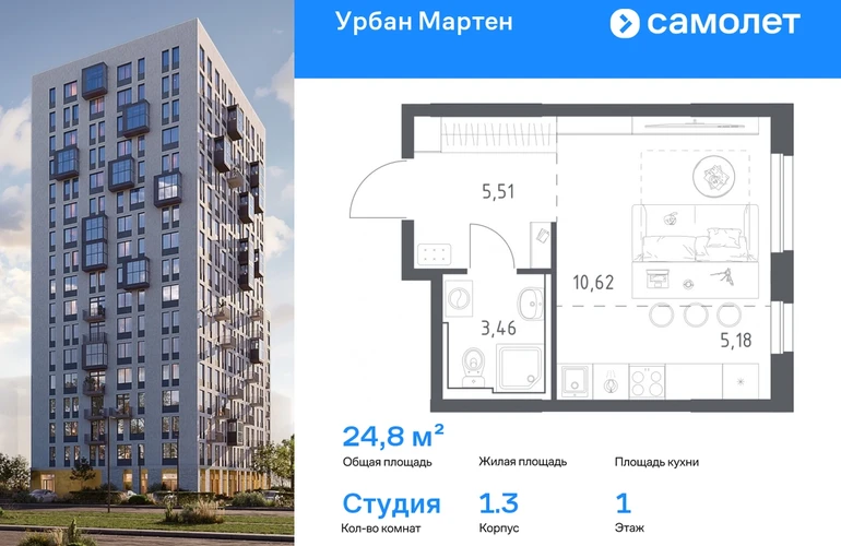 Строим кварталы для жизни с заботой о будущем. Предлагается квартира студия комфорт-класса 24,17 кв.м в корпусе 1.3 на 1 этаже, в ЖК «Урбан Мартен» Квартира с предчистовой отделкой. Доступность дополнительных опций уточняйте у застройщика. Приобрести квартиру возможно по специальным акциям от застройщика, с текущими условиями акций можно ознакомиться в блоке «Акций». Цена динамическая и может отличаться, уточняйте актуальность у застройщика. В жилом комплексе «Урбан Мартен» у вас будет собственная Уфа: домашняя, неторопливая, теплая. Здесь дети будут играть во дворе без машин в догонялки, собака сможет бегать за палкой по пляжу, а с соседями получится встречаться не только у лифта, но и на утренних занятиях йогой на зеленой лужайке рядом с домом. Жилой комплекс «Урбан Мартен» находится в Демском районе — самом тихом и зеленом в Уфе. Здесь можно открывать окна нараспашку, чтобы квартира наполнялась свежим воздухом, и наблюдать с балкона, как покачиваются макушки деревьев. #yan19-2r1800708#О застройщике