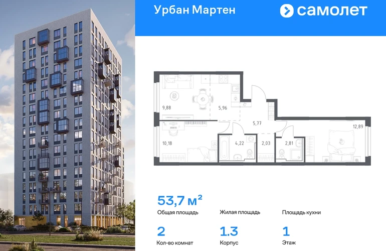 Строим кварталы для жизни с заботой о будущем. Предлагается 2-комнатная квартира комфорт-класса 53,11 кв.м в корпусе 1.3 на 1 этаже, в ЖК «Урбан Мартен» Квартира с предчистовой отделкой. Доступность дополнительных опций уточняйте у застройщика. Приобрести квартиру возможно по специальным акциям от застройщика, с текущими условиями акций можно ознакомиться в блоке «Акций». Цена динамическая и может отличаться, уточняйте актуальность у застройщика. В жилом комплексе «Урбан Мартен» у вас будет собственная Уфа: домашняя, неторопливая, теплая. Здесь дети будут играть во дворе без машин в догонялки, собака сможет бегать за палкой по пляжу, а с соседями получится встречаться не только у лифта, но и на утренних занятиях йогой на зеленой лужайке рядом с домом. Жилой комплекс «Урбан Мартен» находится в Демском районе — самом тихом и зеленом в Уфе. Здесь можно открывать окна нараспашку, чтобы квартира наполнялась свежим воздухом, и наблюдать с балкона, как покачиваются макушки деревьев. #yan19-2r1802054#О застройщике
