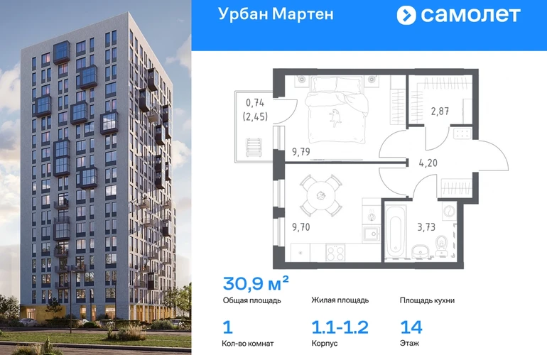 Строим кварталы для жизни с заботой о будущем. Предлагается 1-комнатная квартира комфорт-класса 31,03 кв.м в корпусе 1.1-1.2 на 14 этаже, в ЖК «Урбан Мартен» Квартира с предчистовой отделкой. Доступность дополнительных опций уточняйте у застройщика. Приобрести квартиру возможно по специальным акциям от застройщика, с текущими условиями акций можно ознакомиться в блоке «Акций». Цена динамическая и может отличаться, уточняйте актуальность у застройщика. В жилом комплексе «Урбан Мартен» у вас будет собственная Уфа: домашняя, неторопливая, теплая. Здесь дети будут играть во дворе без машин в догонялки, собака сможет бегать за палкой по пляжу, а с соседями получится встречаться не только у лифта, но и на утренних занятиях йогой на зеленой лужайке рядом с домом. Жилой комплекс «Урбан Мартен» находится в Демском районе — самом тихом и зеленом в Уфе. Здесь можно открывать окна нараспашку, чтобы квартира наполнялась свежим воздухом, и наблюдать с балкона, как покачиваются макушки деревьев. #yan19-2r1807995#О застройщике