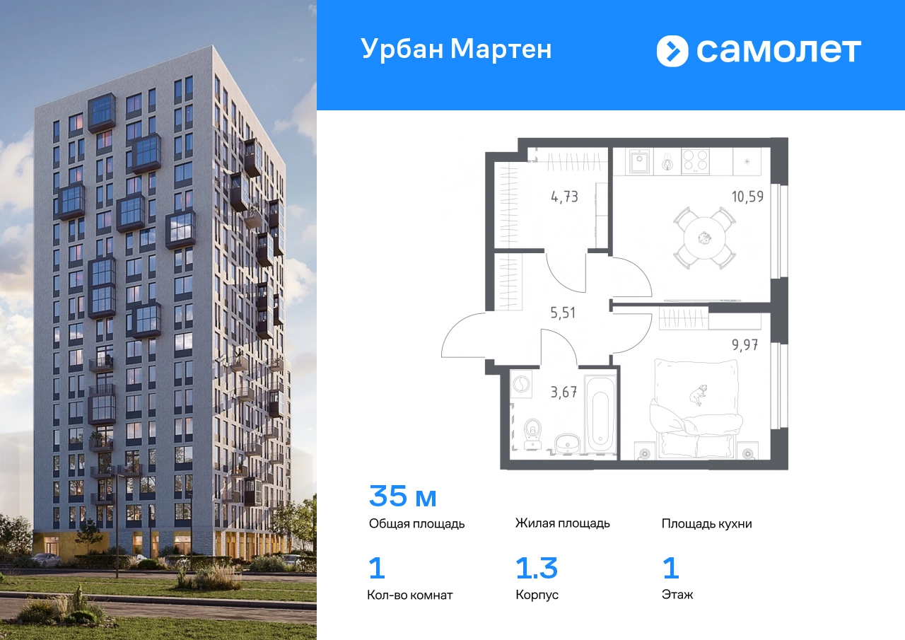 Строим кварталы для жизни с заботой о будущем. Предлагается 1-комнатная квартира комфорт-класса 34,47 кв.м в корпусе 1.3 на 1 этаже, в ЖК «Урбан Мартен» Квартира с предчистовой отделкой. Доступность дополнительных опций уточняйте у застройщика. Приобрести квартиру возможно по специальным акциям от застройщика, с текущими условиями акций можно ознакомиться в блоке «Акций». Цена динамическая и может отличаться, уточняйте актуальность у застройщика. В жилом комплексе «Урбан Мартен» у вас будет собственная Уфа: домашняя, неторопливая, теплая. Здесь дети будут играть во дворе без машин в догонялки, собака сможет бегать за палкой по пляжу, а с соседями получится встречаться не только у лифта, но и на утренних занятиях йогой на зеленой лужайке рядом с домом. Жилой комплекс «Урбан Мартен» находится в Демском районе — самом тихом и зеленом в Уфе. Здесь можно открывать окна нараспашку, чтобы квартира наполнялась свежим воздухом, и наблюдать с балкона, как покачиваются макушки деревьев. #yan19-2r1810405#О застройщике