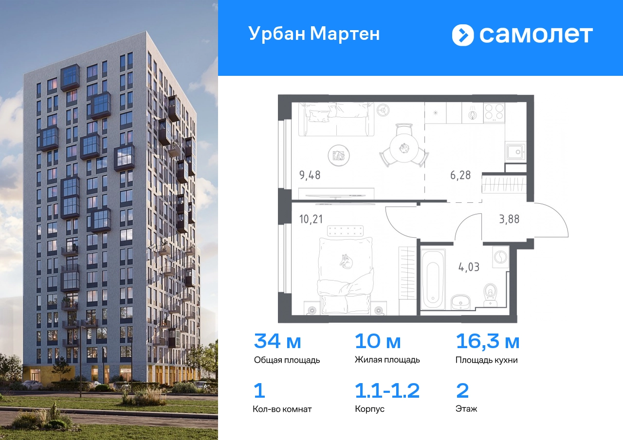 Строим кварталы для жизни с заботой о будущем. Предлагается 1-комнатная квартира комфорт-класса 33,88 кв.м в корпусе 1.1-1.2 на 2 этаже, в ЖК «Урбан Мартен» Квартира с чистовой отделкой. Доступность дополнительных опций уточняйте у застройщика. Приобрести квартиру возможно по специальным акциям от застройщика, с текущими условиями акций можно ознакомиться в блоке «Акций». Цена динамическая и может отличаться, уточняйте актуальность у застройщика. В жилом комплексе «Урбан Мартен» у вас будет собственная Уфа: домашняя, неторопливая, теплая. Здесь дети будут играть во дворе без машин в догонялки, собака сможет бегать за палкой по пляжу, а с соседями получится встречаться не только у лифта, но и на утренних занятиях йогой на зеленой лужайке рядом с домом. Жилой комплекс «Урбан Мартен» находится в Демском районе — самом тихом и зеленом в Уфе. Здесь можно открывать окна нараспашку, чтобы квартира наполнялась свежим воздухом, и наблюдать с балкона, как покачиваются макушки деревьев. #yan19-2r1810409#О застройщике