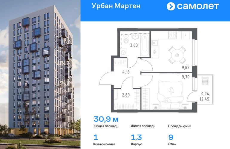 Предлагается 1-комнатная квартира комфорт-класса 31,05 кв.м в корпусе 1.3 на 9 этаже, в ЖК «Урбан Мартен» Квартира без отделки. Доступность опции «отделка» и возможность комплектации мебелью и декором уточняйте у застройщика. Приобрести квартиру возможно по специальным акциям от застройщика, с текущими условиями акций можно ознакомиться в блоке «Акций». Цена динамическая и может отличаться, уточняйте актуальность у застройщика. В жилом комплексе «Урбан Мартен» у вас будет собственная Уфа: домашняя, неторопливая, теплая. Здесь дети будут играть во дворе без машин в догонялки, собака сможет бегать за палкой по пляжу, а с соседями получится встречаться не только у лифта, но и на утренних занятиях йогой на зеленой лужайке рядом с домом. Жилой комплекс «Урбан Мартен» находится в Демском районе — самом тихом и зеленом в Уфе. Здесь можно открывать окна нараспашку, чтобы квартира наполнялась свежим воздухом, и наблюдать с балкона, как покачиваются макушки деревьев. #yan19-2r1810714#О застройщике