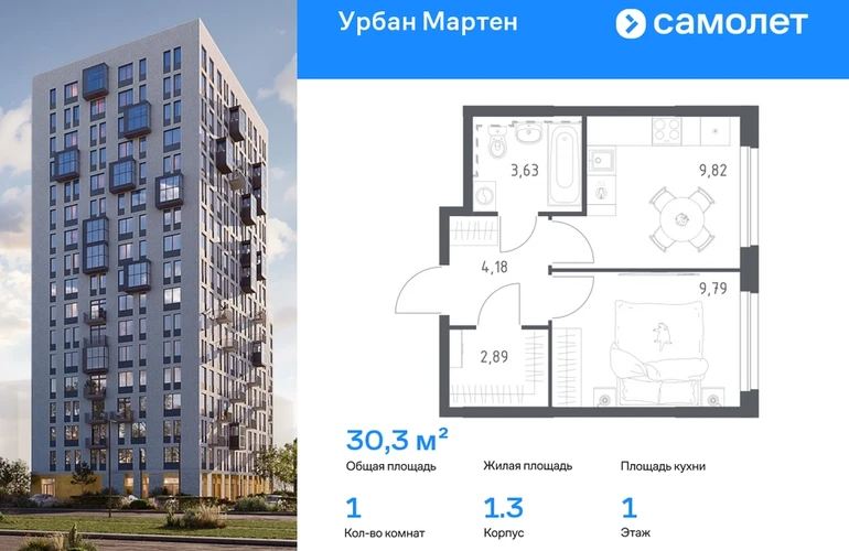 Строим кварталы для жизни с заботой о будущем. Предлагается 1-комнатная квартира комфорт-класса 30,31 кв.м в корпусе 1.3 на 1 этаже, в ЖК «Урбан Мартен» Квартира с предчистовой отделкой. Доступность дополнительных опций уточняйте у застройщика. Приобрести квартиру возможно по специальным акциям от застройщика, с текущими условиями акций можно ознакомиться в блоке «Акций». Цена динамическая и может отличаться, уточняйте актуальность у застройщика. В жилом комплексе «Урбан Мартен» у вас будет собственная Уфа: домашняя, неторопливая, теплая. Здесь дети будут играть во дворе без машин в догонялки, собака сможет бегать за палкой по пляжу, а с соседями получится встречаться не только у лифта, но и на утренних занятиях йогой на зеленой лужайке рядом с домом. Жилой комплекс «Урбан Мартен» находится в Демском районе — самом тихом и зеленом в Уфе. Здесь можно открывать окна нараспашку, чтобы квартира наполнялась свежим воздухом, и наблюдать с балкона, как покачиваются макушки деревьев. #yan19-2r1812261#О застройщике