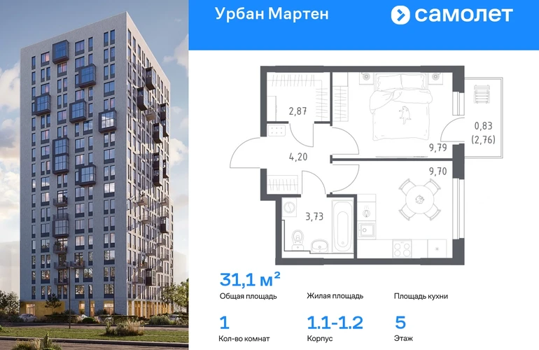 Строим кварталы для жизни с заботой о будущем. Предлагается 1-комнатная квартира комфорт-класса 31,12 кв.м в корпусе 1.1-1.2 на 5 этаже, в ЖК «Урбан Мартен» Квартира с чистовой отделкой. Доступность дополнительных опций уточняйте у застройщика. Приобрести квартиру возможно по специальным акциям от застройщика, с текущими условиями акций можно ознакомиться в блоке «Акций». Цена динамическая и может отличаться, уточняйте актуальность у застройщика. В жилом комплексе «Урбан Мартен» у вас будет собственная Уфа: домашняя, неторопливая, теплая. Здесь дети будут играть во дворе без машин в догонялки, собака сможет бегать за палкой по пляжу, а с соседями получится встречаться не только у лифта, но и на утренних занятиях йогой на зеленой лужайке рядом с домом. Жилой комплекс «Урбан Мартен» находится в Демском районе — самом тихом и зеленом в Уфе. Здесь можно открывать окна нараспашку, чтобы квартира наполнялась свежим воздухом, и наблюдать с балкона, как покачиваются макушки деревьев. #yan19-2r1826245#О застройщике
